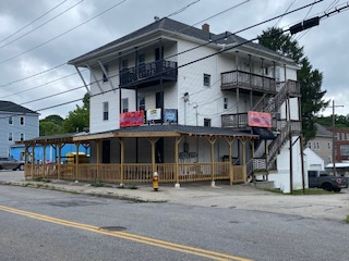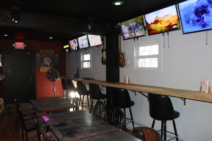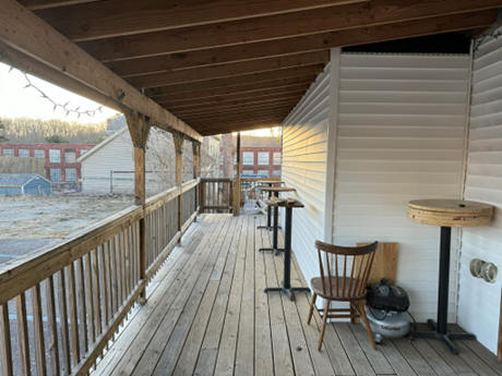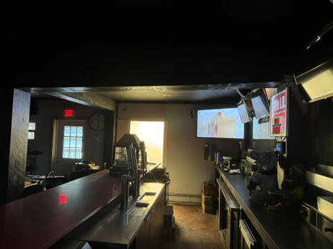 Eggs or Omelet, fried bacon, toast, fries, cup of coffee or tea