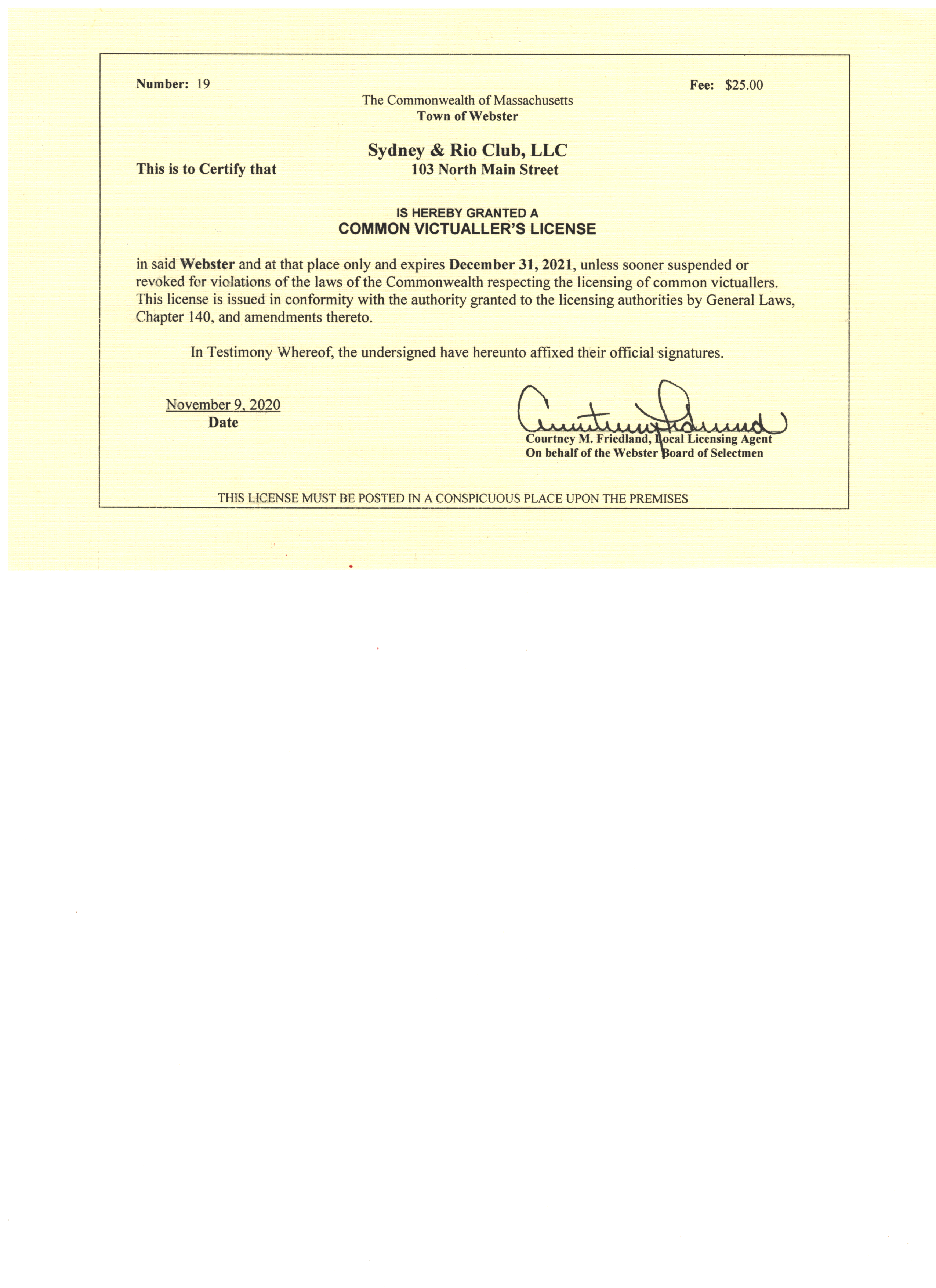 Due to Covid-19 the Club / Restaurant is closed until further notice
